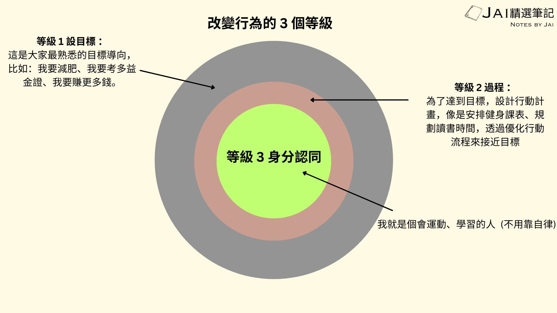 《原子習慣》把行為改變分成三個等級: